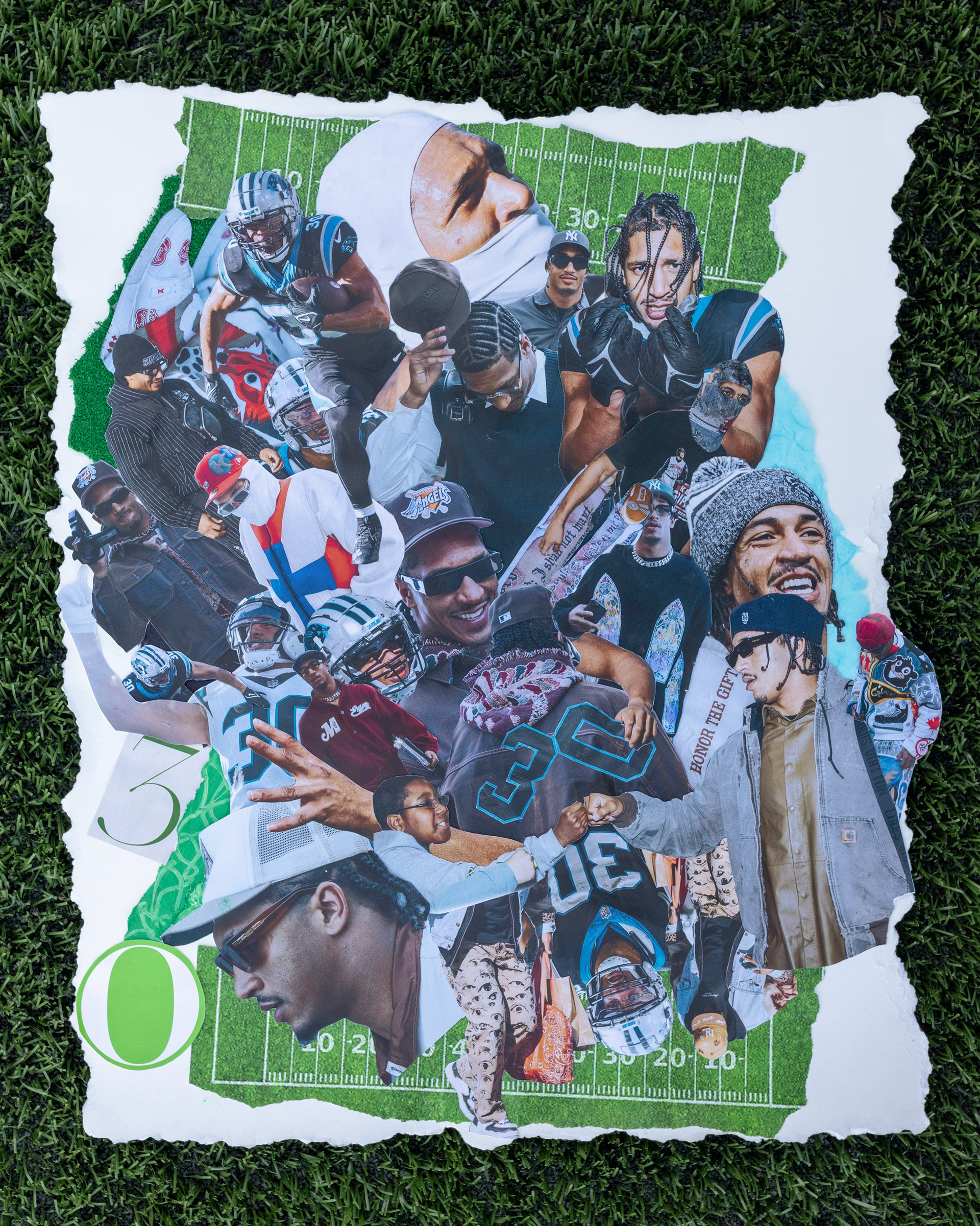 The Carolina Panthers commissioned this collage to celebrate Black History Month and honor their running back, Chuba Hubbard. By collaborating with the team's lead photographer, I was able to source imagery that authentically reflects Chuba's personality. I used these assets to create a composition full of motion and expression to represent his love for fashion and football.